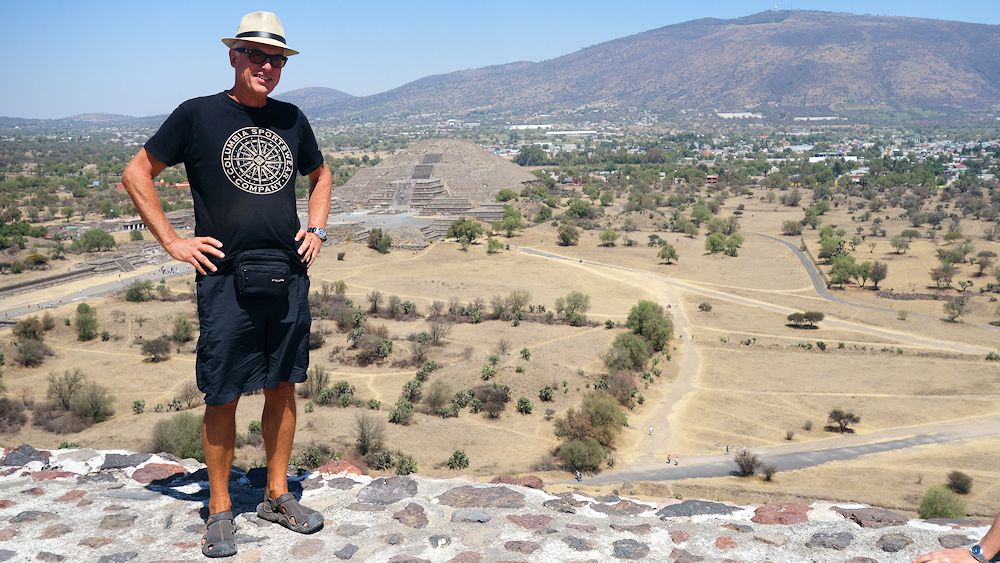 Blick von der Sonnenpyramide auf die kleinere Mondpyramide.