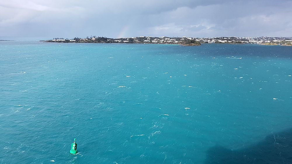 Es kommt noch kurz die Sonne heraus und läßt das Meer strahlen.