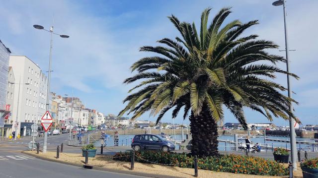 Das maritime Klima lässt sogar Palmen gedeihen, wenn es auch heute 10 Grad nur sind.
