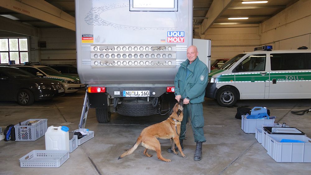 Erste Fahrt nach Übernahme war zum Zoll, wo der Spürhund unser Fahrzeug durchschnüffelte.