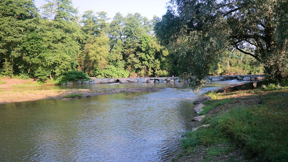 Ausflug an die Sulm bei Leibnitz. Das Steinerne Wehr ist das älteste Flussbad der Steiermark und genau das richtige bei 35 Grad.