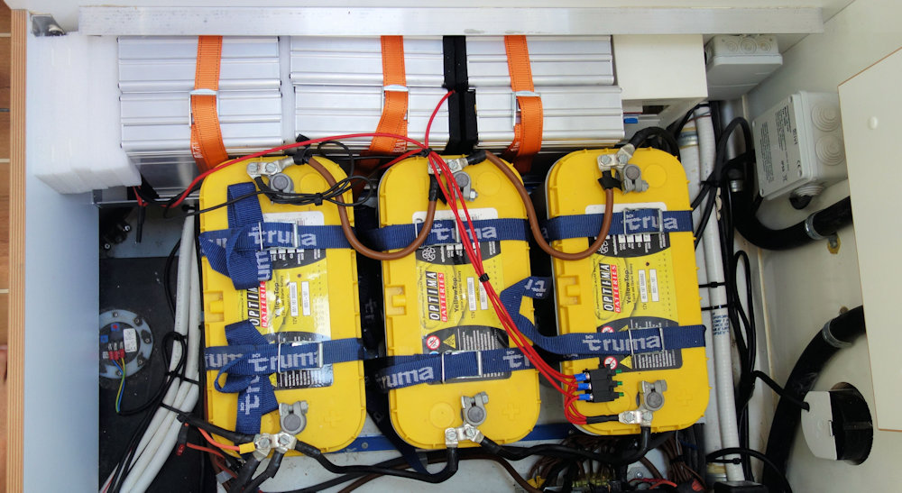 Die 6 Aluboxen sind unsere neuen LiFePO Batterien.