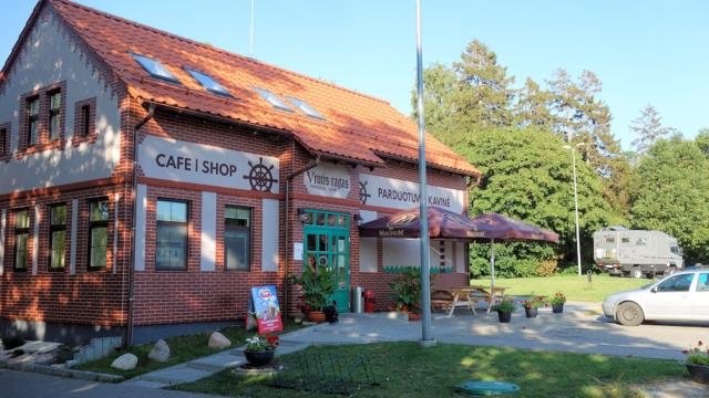 Am Kiosk an der Landspitze (hier mündet die Memel in das Haff) parken wir für die Nacht.