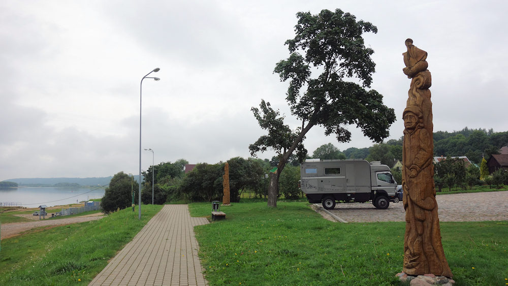 Auf dem Parkplatz am Fähranleger sind wir ganz allein.