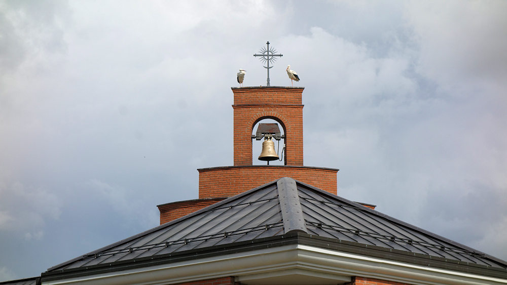 Auch die Störche auf der naheliegenden Kirche sind wohl auf Wallfahrt.