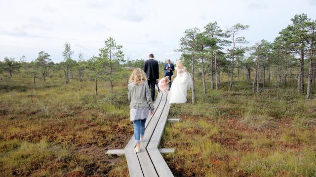 Sonntagmorgen um 10 Uhr trifft man auf dem Bohlenweg ein Brautpaar.