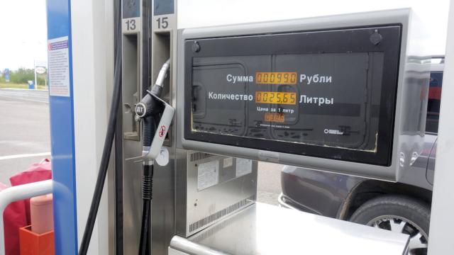 In Russland wird zuerst mal vollgetankt. Der Preis beträgt 38,6 Rubel/Liter, das sind 0,57 €.
