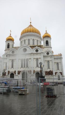 Die Erlöserkirche wurde erst in den 1990er Jahren neu errichtet, nachdem Stalin die alte Kirche 1931 sprengen ließ. Sie ist das zentrale Gotteshaus der russisch-orthodoxen Christen. Fotografieren im Innern ist verboten.