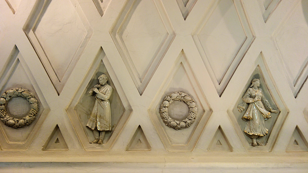 Deckendetails: Porzellanfiguren mit Goldapplikationen.
