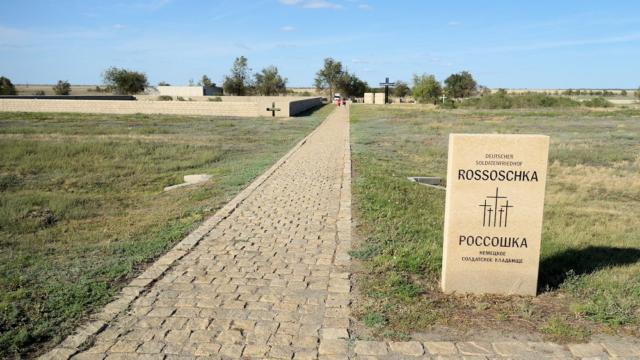 Hier in Roggoschin sind 120.000 deutsche Soldaten auf Steinwürfeln und einem riesiegen Rundgrab vermerkt.