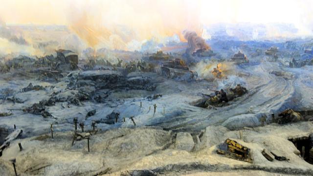 Schwerpunkt ist das gigantische Rundpanorama von 16 x 120 m das die Ereignisse des 26.01.1943 darstellt aus der Perspektive eines Beobachters auf dem Mamei-Hügel.