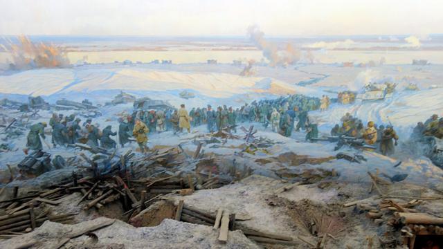 während hier schon gefangene deutsche Soldaten in Kolonnen abgeführt werden.