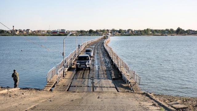 Pontonbrücke über einen Wolgaarm