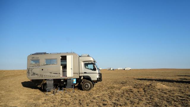 Stellplatz in der Steppe. 200 km vor Usbekistan.