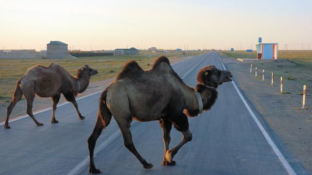 Frühmorgens waren wir bereits wieder auf der Piste. Nur Kamele sind um diese Zeit auf.