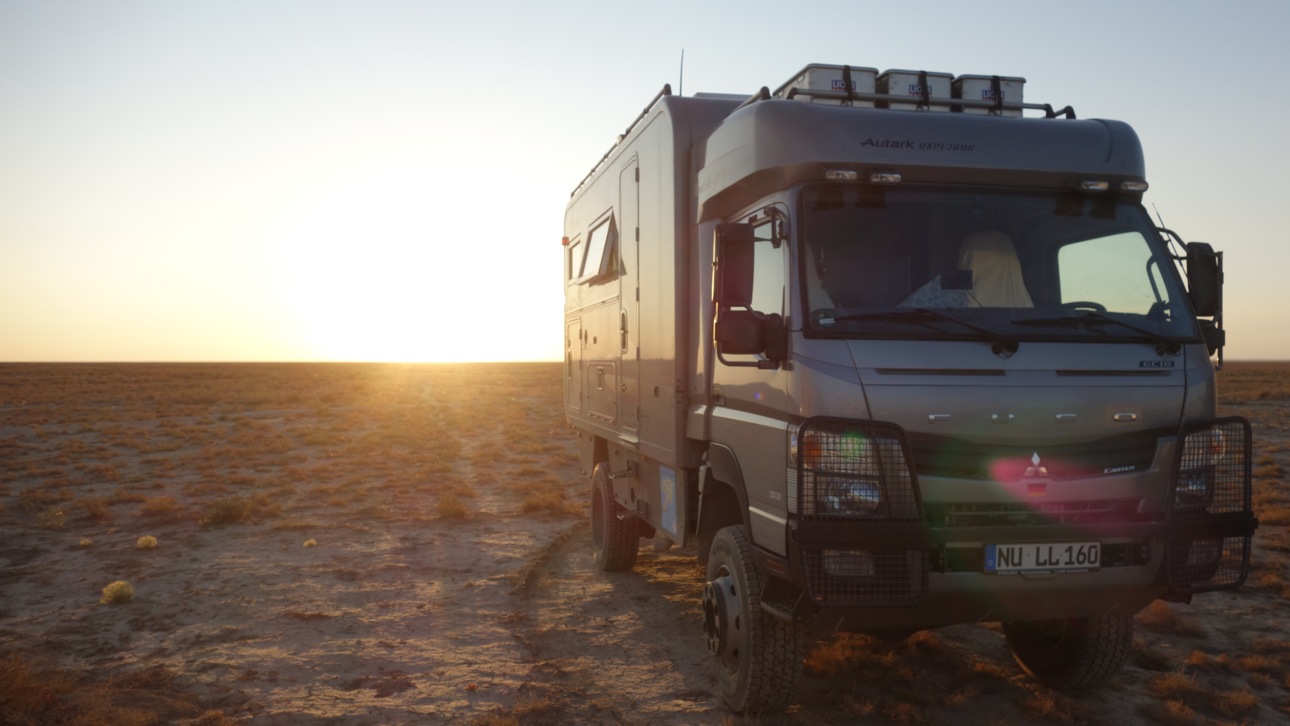 70 km von der usbekischen Grenze weg, haben wir in der Steppe geparkt. Das Bild entstand natürlich erst am nächsten Morgen. Bei Ankuft war es schon Nacht.