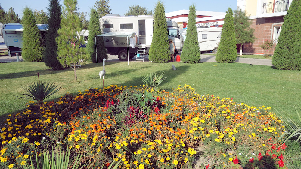 Ein ausnehmend schöner Parkplatz am Regal Hotel in Samarkand.