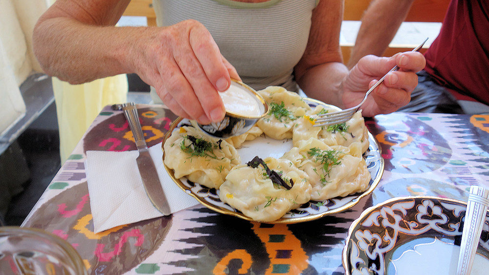 Mit Kürbis gefüllte Teigtaschen.Gewürzt mit Kümmel, Dill und Schnittlauch.