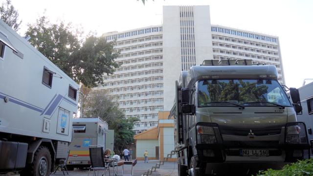 Unser Parkplatz am Hotel Usbekistan war direkt im Zentrum.