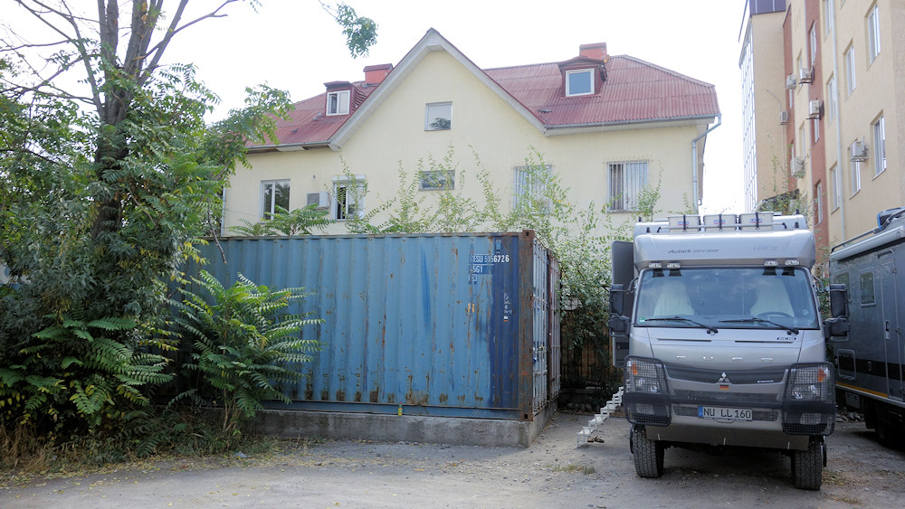 Auf dem Parkplatz des Roten Halbmond in Osh.