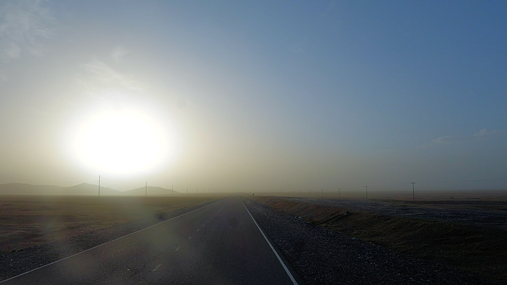 Frühmorgens sind wir durch das kirgisische Hochland gegen China gefahren.
