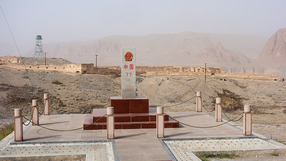 Nach Passieren der kirgisisichen Grenzstation waren wir um die Mittagszeit in China. Vor der Grenzstation.