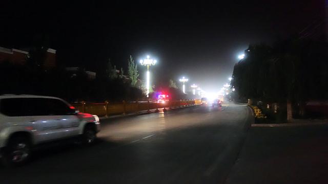 Die Hauptstraßen in Kashgar sind mit riesigen Kandelabern beleuchtet.