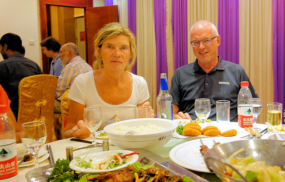 Abends, nach der Fahrzeugfreigabe, gab es noch ein schönes chinesisches Abendessen mit Bier und Reis und Hirseschnaps.