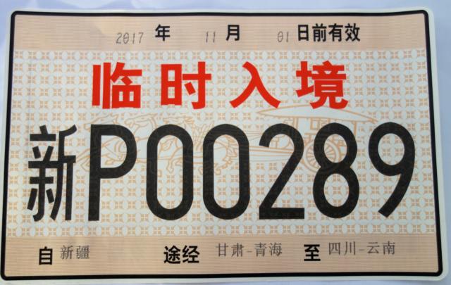 Bevor wir heute losfuhren bekamen wir noch unser chinesisches Nummernschild...