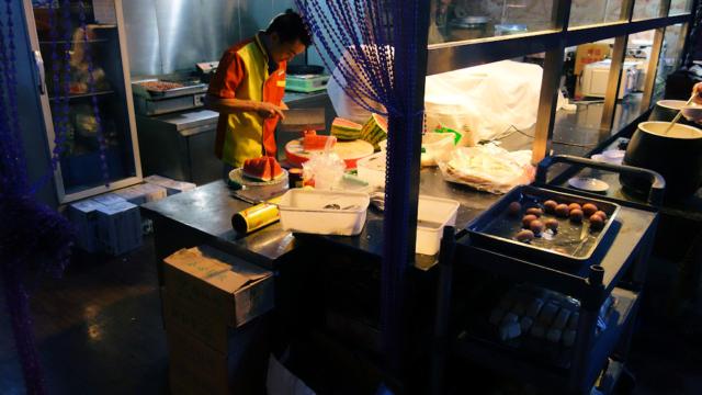 Chinesisches Frühstück im Hotel. Kaffee ist unbekannt und es gibt außer Eiern alle möglichen warmen Gericht.