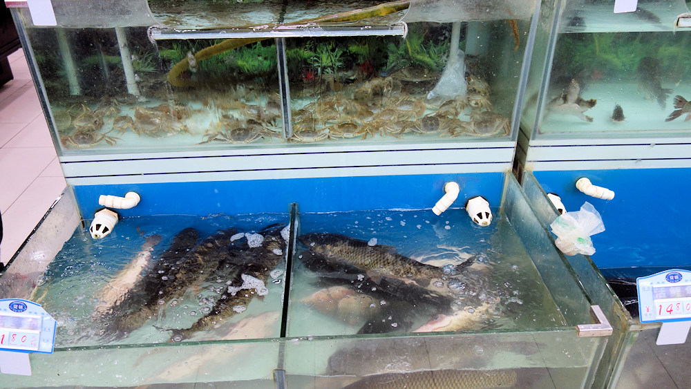 Auch lebende Meeresfrüchte sind in der Lebensmittelabteilung.