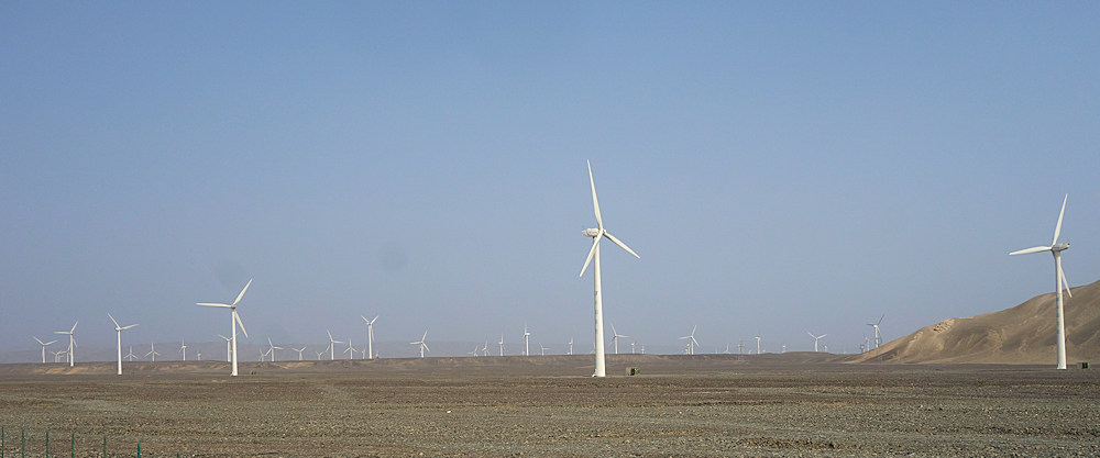 Hier im Turpan-Becken, kurz vor der Stadt Turpan wehen immer starke Winde, bis auf heute.