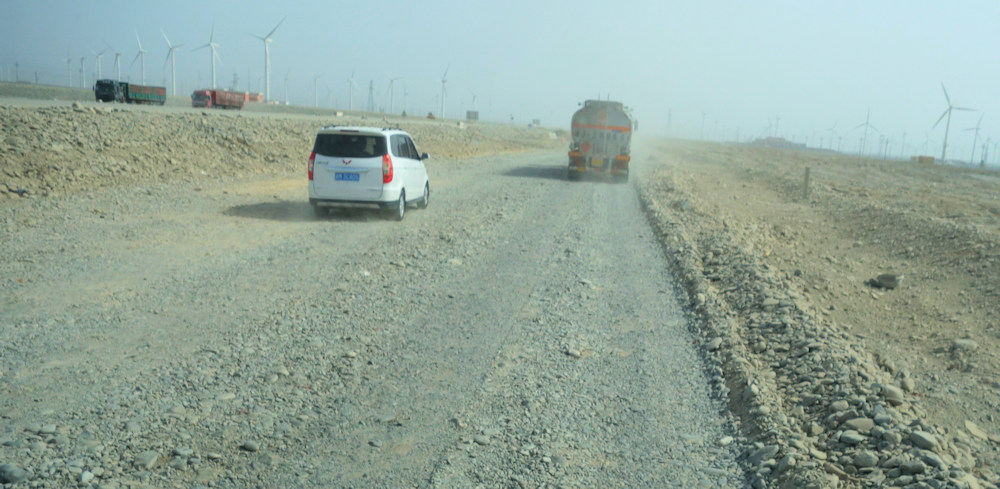 Das ist eine Ausnahme: Die Autobahnbaustelle muss im Dreck umfahren werden.