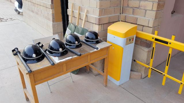 Das ist die Ausrüstung der Wachmannschaft des Hotels.
