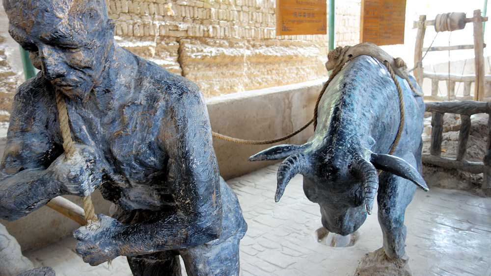 So wurden früher die Felder bewässert: Aus den unterirdischen Kanälen (wegen der Verdunstung unterirdisch) wurde das Wasser geschöpft.