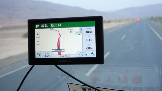 Kurz nach Turpan sind wir heute durch das Turpan-Becken gefahren, nicht an der tiefsten Stelle, aber doch ging es bis zu 50 m unter Null.
