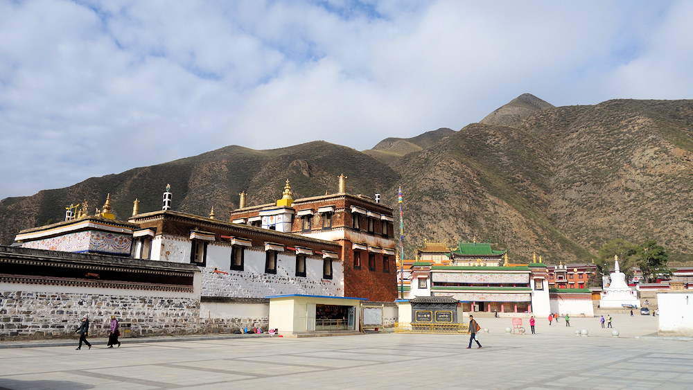 Hauptplatz im Kloster Labrang. Für den Zugang zum Kloster muss man Eintrittsgeld bezahlen.