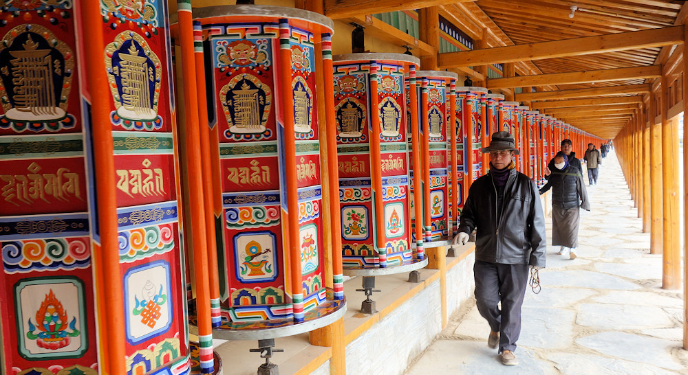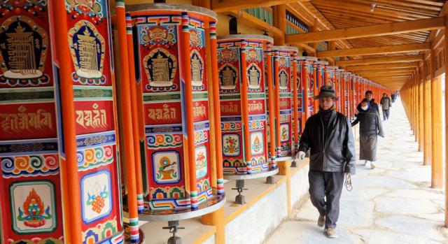 Hunderte Meter von Gebetsmühlen umgeben den zentralen Klosterbereich.