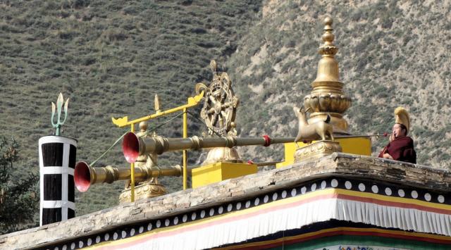 Die Mönche verabscheiden uns mit Horn-Getute.