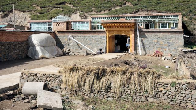 Typisches Anwesen der seßhaften Tibeter: Die Wintergärten nach Süden sind quasi Solarheizungen.