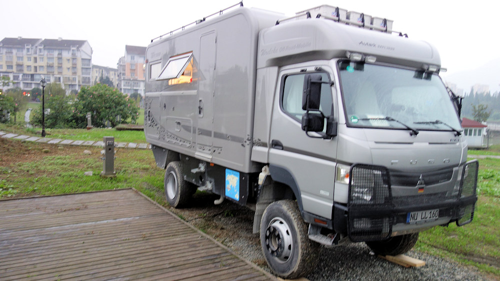 Unser Parkplatz in Dujiangyan, nahe Chengdu.