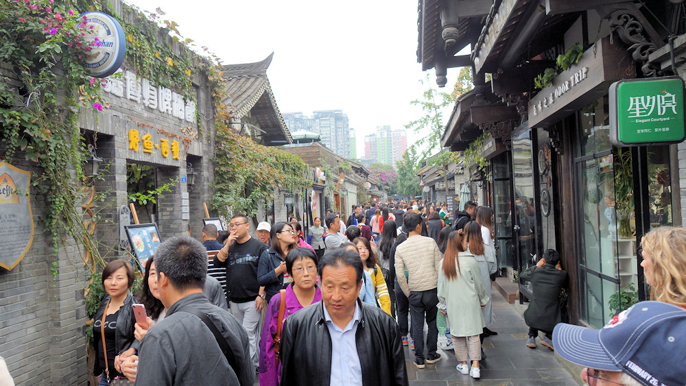 Es gibt aber auch ein Stück Altstadt in Chengdu, aber mit lauter vornehmen und teueren Geschäften gepflastert. Man achte auf das Schild oben links.