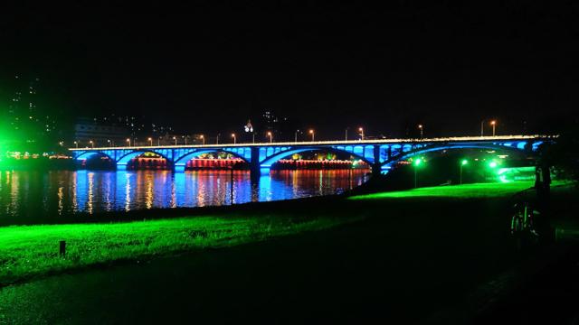 Die Brücke über den Min-Fluss war in der Nacht illuminiert.