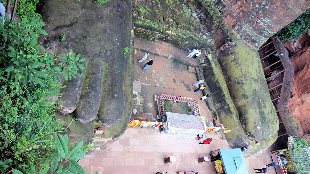 Beim heruntersteigen kann man die Dimension des Buddahs erahnen.