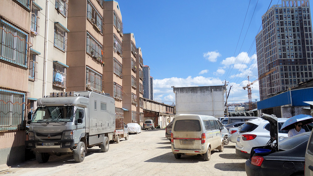 Mitten in der City haben wir uns auf einen Parkplatz gequetsch. Der Walmart war nicht weit....