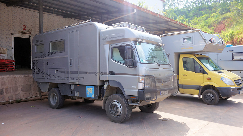 Unser Parkplatz in Mohan, 5 km von der Grenze zu Laos.