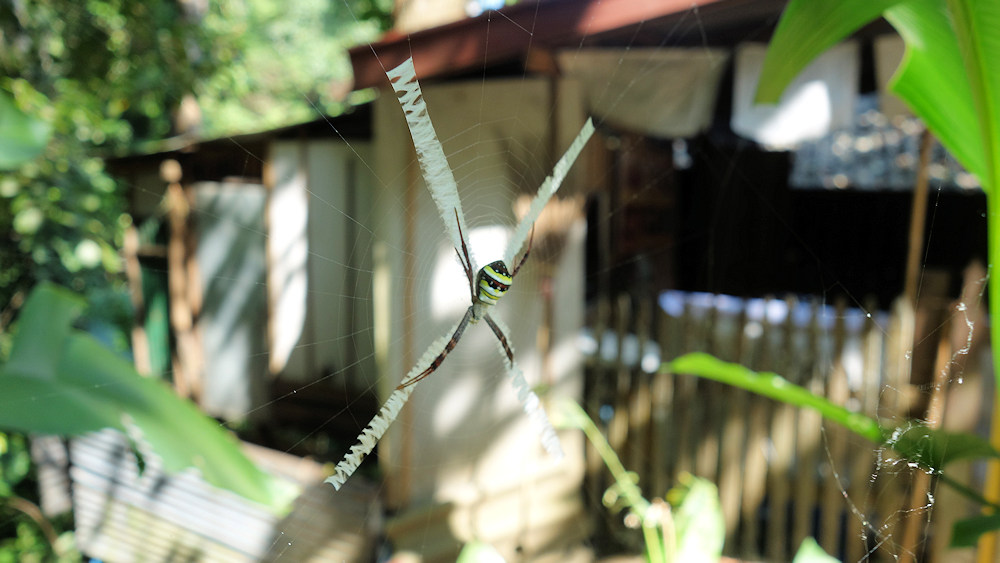 Diese Radnetzspinne hat noch ein Fadenkreuz für die anfliegenden Insekten gebaut.