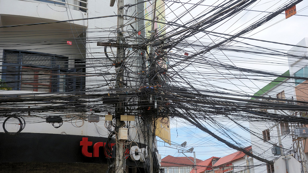Zum Schluß bewundern wir noch die Kabelarchitektur von Vientiane.