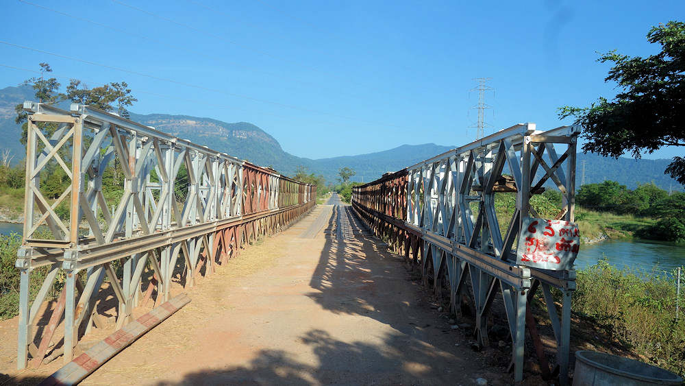 Man hat uns heute ein Zeitfenster von 7:30 Uhr bis 9:30 Uhr gegeben, in dem die Höhenbake an der ersten Brücke entfernt ist.