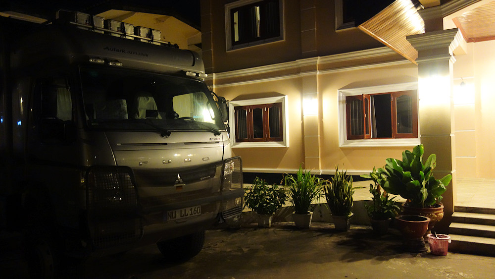 Unser Parkplatz am Savanpathna Hotel.